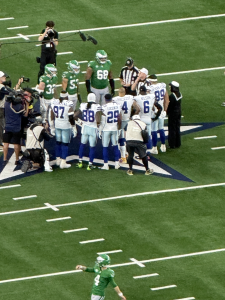 On the first play Williams ran for 5 to the 2. Prescott ran the ball around right end for no gain, bringing up 3rd and goal. A Prescott pass fell incomplete in the end zone. Dallas went for the TD on 4th down and Prescott’s pass fell incomplete and the Eagles took over at the 1 with 3:48 left in the game.