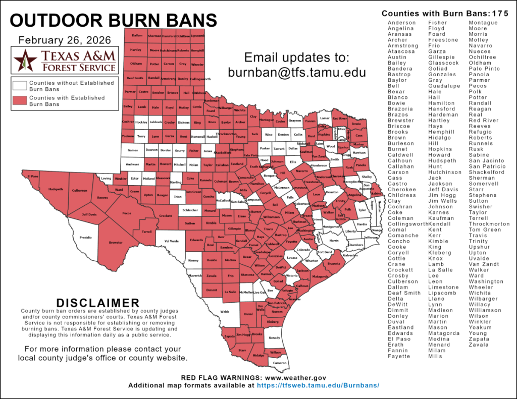 Burn Ban in effect for Upshur County By Editor | February 25, 2026 | 0 Posted in Breaking News, News Leave a Comment Name (required) Email (will not be published) (required) Comment Click here to cancel reply. Related Posts CHRISTUS Health to host Gilmer interviews for new emergency room in Longview April 10, 2026 | No Comments » Gilmer FFA Greenhouse Sale set for Saturday, April 11 April 9, 2026 | No Comments » Record oil production in West Texas helps stabilize U.S. supply amid Iran war April 9, 2026 | No Comments » Texas is giving data centers more than $1 billion in tax breaks each year April 8, 2026 | No Comments » Goudarzi & Young Easter Egg Hunt rescheduled for Tuesday, April 7 April 7, 2026 | No Comments »